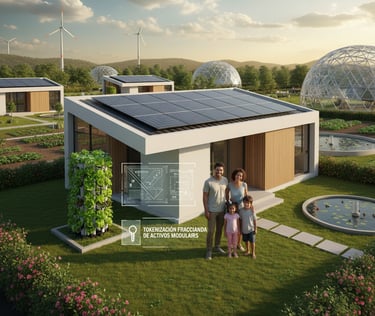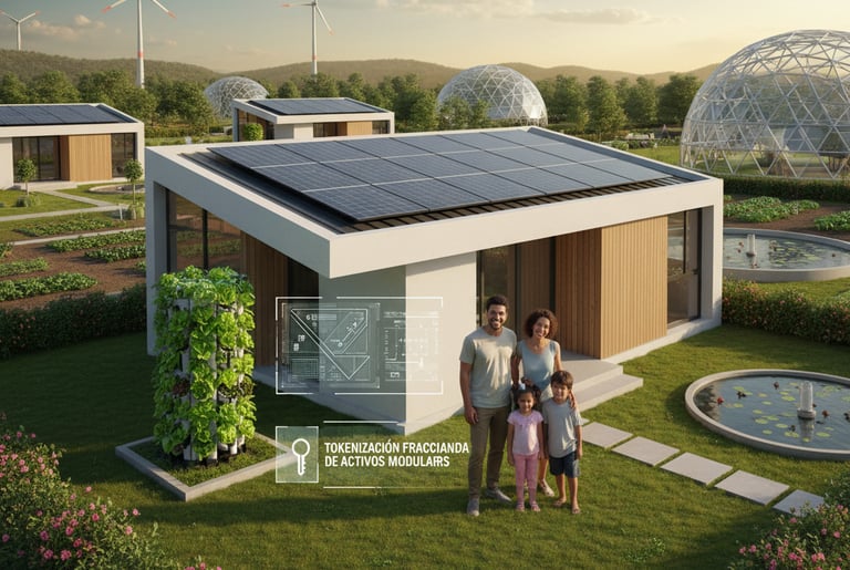 Creación de ecosistemas comunitarios autosuficientes (vivienda, alimento, oficios) financiados mediante la Tokenización Fraccionada de Activos Modulares.